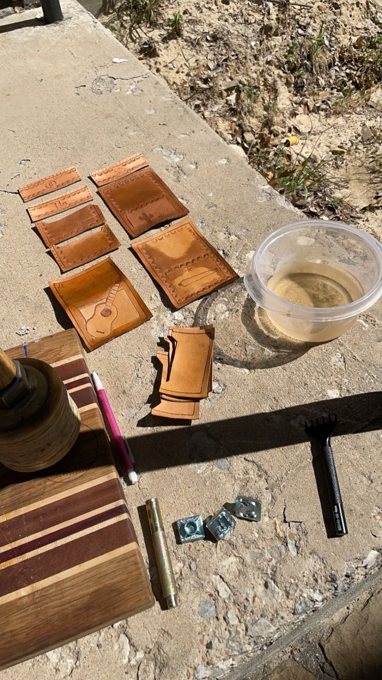 15 years after my grandfather passed away, in 2021, I found myself playing baseball at Weatherford College. I was looking for a way to make a little bit of cash that worked around the intense schedule of junior college baseball. I saw an opportunity in making customizable leather wallets. A handful of my teammates supported the idea and agreed to buy a simple bi fold wallet with their initials stamped in. Those wallets were my introduction to the art of leatherwork. The quality of my work improved over my time at Weatherford College and I sharpened my skills by learning the craft one wallet at a time. Every cut, stitch, and imperfection taught me something new, I didn't know it at the time but these mistakes were teaching me lessons that would later carve the foundation of The Return of The King's Chair.